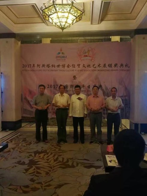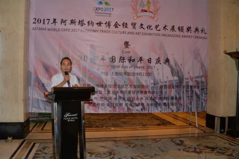 2017年9月21日下午,阿斯塔納世博會經(jīng)貿(mào)文化藝術(shù)展頒獎典禮在上海和平飯店隆重舉行。上海市原副市長劉振元致辭、阿斯塔納世博會經(jīng)貿(mào)文化藝術(shù)展組委會主席蔣位卿,組委會秘書長謝有玲發(fā)表致辭,哈薩克斯坦駐滬總領(lǐng)事克拉把葉夫·佐齊漢、世博會館長與總代表聯(lián)盟全球副總裁王慧、聯(lián)合國國際信息發(fā)展組織Arsenio?Rodniquez主席專程從美國趕到現(xiàn)場,對“一帶一路,共建繁榮”高峰論壇在阿斯塔納世博會成功舉辦和參展企業(yè)在世博會上的精彩亮相表示祝賀、世界和平策進總會發(fā)展委員會主任歐陽振東、中非經(jīng)貿(mào)投資促進會會長劉峻杰、江蘇省駐滬辦副主任趙順興等200多位來自美國、意大利、西班牙、緬甸、香港嘉賓參加了典禮活動。 畫家常要穩(wěn)發(fā)表感言,榮獲2017阿斯塔納世博會經(jīng)貿(mào)文化藝術(shù)展特別榮譽獎。